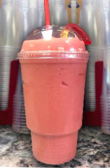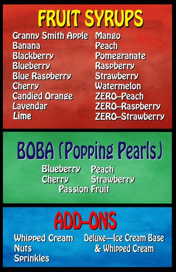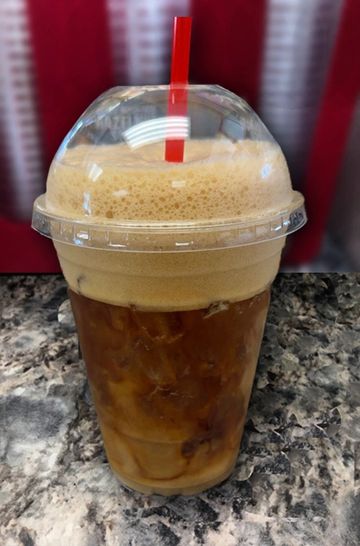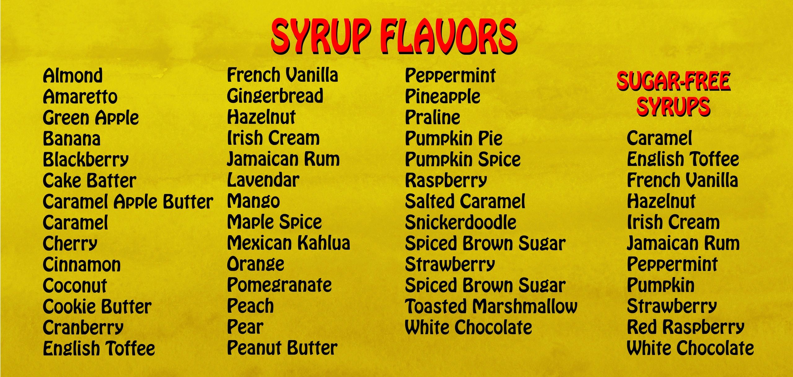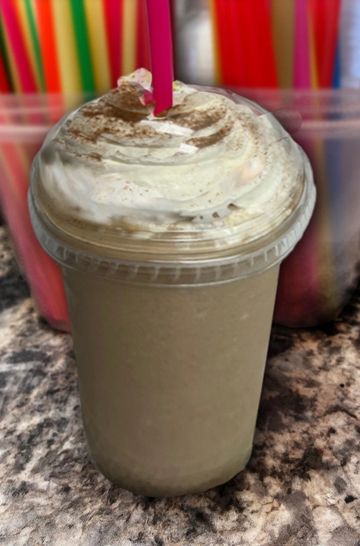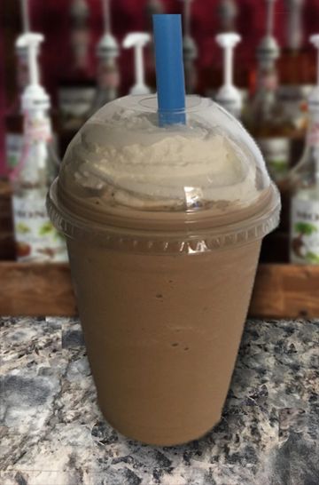 Frappe Powder, Milk and a choice of your favorite Flavored Syrups, blended or on the rocks.